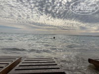 До моря пешком 20-30 минут по прямой. Это до рифов. До песчаного пляжа пешком 40-50 минут. Он прямо у старого города. Есть автобус. Ходит по расписанию, которое крайне не удобное. И туда тоже очередь. Рифовый пляж очень маленький. Находится под скалой, спуск по длинной лестнице. Ширина в два лежака. Утром и вечером прилив, поэтому первый ряд в вроде. Битва за лежаки. Вход пологий и длинный. Смесит ракушечника и рифов. Дальше сами рифы. Без тапок не ходить. Рыбок много, красивые и крупные. Также много ежей. На берег выходят крабы. Песочный пляж чуть больше. Но он в бухте полностью, со всех сторон берег и это похоже на озеро. Есть и платные пляжи, на них возят также от отеля. Такси до рифового пляжа 1$. Маски обязательно нужны. На пляже продают экскурсии, многие ездили и всем нравилось. Естественно дешевое, чем у гида.