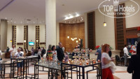 Где то около времени стали пускать в залы расположенные в разных крыльях отеля. Анимация на 2 этаже, где ресепшн и нет никого и на улице, где сидят видимо родственники и друзья руководства местной национальности. Мы сидим внутри, едим... НИКТО НЕ ПОЗДРАВЛЯЛ.... ничего общего. Очень неприятно, что если хочешь хоть что то посмотреть нужно стоять рядом с сидящим на местах местными.