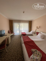 С аэропорта ехать минут 30, заселили нас после 14:00. Номер был с видом на собор на 2 этаже (3251), вид отличный, до ресторана идти близко, но в один из вечеров был концерт на улице и слышимость очень хорошая, уснуть было сложно. Сам номер уже уставший, но хочу отметить, что был чистый! Покрытие и шторы были чистыми, только вот почему-то про стулья забыли, их обивка была грязной. Мебель в номере местами ободрана, в ванной видно плесень. Постельное и полотенца, в том числе пляжные, хорошие и свежие.
