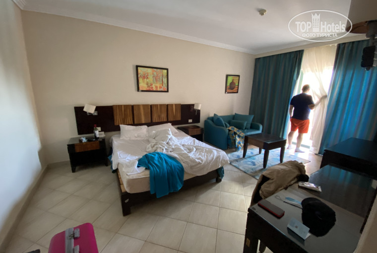 Показывает номер парень, который возит багаж на машинке до номера, расхваливает, какой шикарный номер что заселяют нас раньше времени, так бы до 14:00, мы понимаем, что надо дать денег, даю 5$, он не берет в выпученными глазами и начинает дальше, что номер крутой, мол за такой номер очень мало! Я начинаю злиться и включаю диктофон, чтобы записать его вымогательство, он это замечает и начинает паниковать, звонить старшему арабу на ресепшене и говорить на своём языке, потом просят нас к телефону и начинает говорит «что вы нам ничего не должны, если только это будет подарком». По итогу этот парнишка не берет 5$ и просит больше да ещё и чтобы я запись удалила. Спустя долгую ругань, я говорю что мы будем ждать 14:00 и я пойду к управляющему, парень испугался взял 5$ и 100 раз сказал, что это подарок, а не взятка, просил удалить Запись !