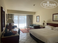 Сразу скажу, я не требовательный турист и не устраиваю истерики, по каждому поводу. Но по этому отелю рейтинг очень завышен, поэтому нужна свежая объективная информация, чтобы не было иллюзий. Отель ооооочень старый, но этого никто не скрывал. Была надежда, что после смены владельца отремонтируют номерной фонд, но нет. Не отремонтированы ни номера, ни территория. Все пошарпано, раздолбано, с дырками в потолке главного ресторана, неработающим фуникулером, бассейном в СПА-центре, фонтаном и т.д. В номере пытаются поддерживать порядок, но при ближайшем рассмотрении видно, что и полы плохо помыты, на ковре пятна засохшие, пыль на телефоне и других не очень популярных местах никто не вытирает. Сантехника пожившая, но у меня все работало. Хотя ребята, которые делают уборку всегда вежливы и спрашивают, нужно ли что-то. Про питание. Никогда не думала, что буду жаловаться на еду :) Но приходится. Я приехала в отель в районе 10 утра. Заселили сразу, спасибо им за это. Но. После самолета (в котором тоже не кормят сейчас) хотелось что-нибудь съесть. Я обошла весь отель в поисках еды и обнаружила только 2 тарелки с какими-то сладкими булками в ресторане у пляжа. ВСЁ. С 10 утра до 12.30 в отеле есть нечего. Ни снэков, ни картошки, ни пиццы, вообще ничего. Поэтому, если вы с детьми, вообще не рекомендую сюда ехать. А так, готовьтесь нормально завтракать ))) Это перестаёт быть проблемой, когда входишь в график, но для 5* с системой all inclusive это неприемлемо, с моей точки зрения. Ресторана всего 3 - первый основной в главном холле, второй на пляже, в который нужно записываться на обед, при этом подают очень странного вида блюда (их всего 5 или 6: шаверма, fish&chips, бургер). Я пробовала только шаверму, принесли в булке для хот-дога тушеную курицу. Третий находится на втором ярусе главного холла, над основным рестораном. Он у них считается а-ля карт. Тоже нужно записываться на вечер. Но блюда совсем не соответствует тому, что написано в меню. Советовать не буду. Восточных сладостей не давали ни разу, морепродукты были. В барах кроме напитков, как я говорила, ничего нет. Вино выдаётся по одному бокалу в руки на обед и ужин.