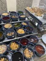 На пляже в баре в обед тоже есть перекус, пару раз там обедали.( макароны, фри, пицца, бургеры, овощи, фрукты).