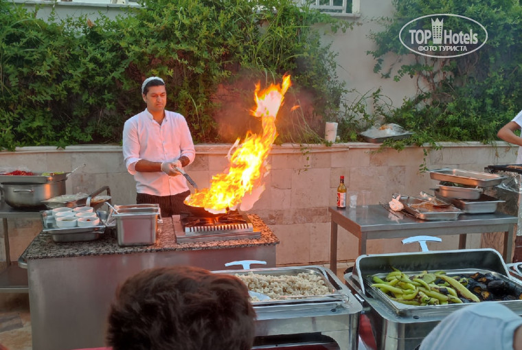 На улице часто готовили дополнительные блюда типа кёфте, дёнеры, рыбу, овощи на гриле, по утрам омлеты.