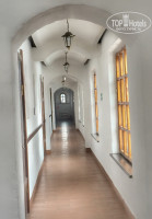 Так вот, мы проживали в комнате № 3 (двухместный номер) на первом этаже Монастырского корпуса. Здание построено по авторскому проекту! Он представляет собой Г-образный двухэтажный корпус, сделанный из камня (второй этаж снаружи отделан деревом) с прямоугольными оконными проемами в коридоре и арочными окнами в комнатах/кельи. Думаю, именно здание этого корпуса может погрузить Вас в XIX век! На фото видно, оригинальность внутреннего строения, а именно, типичные перекрытия коридора цилиндрическими сводами, что естественно погружает посетителей в старину.