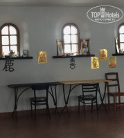 В монастырском корпусе, на первом этаже, есть конференц-зал, его еще можно назвать местом релаксации. Собственница гостиницы Елена - квалифицированный гонг мастер, учения восприятия мира через чувства, через эмоции и физические ощущения, восприятия и обработка мира через звук, и еще, учитель Кундалини Йоги и если я не ошибаюсь, то проводит мастер-классы по этой теме. Помещение имеет второй выход в небольшую общую кухню, в которой есть все необходимое для приготовления (разогрева) пищи (фото прикреплю, чтобы не описывать лишнее, в общем, есть все, что и у нас на кухнях!)