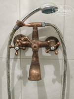 Итак, Вы много раз прочтете слово деревянный: в номер попадаем через деревянную дверь, имеющую некоторые недостатки дерева (рассыхаться и хорошую звукопроводимость). Входим в небольшой холл, слева деревянные полки и вешалки для одежды (просто и удобно). Справа - туалетная комната, есть все необходимое. Три полотенца на человека (ноги, лицо и тело), конечно не турецкого качества, но чистые, не «драные» и не застиранные! При въезде на человека кладется саше: гель для душа, шампунь и маленький кусочек мыла. Туалетная бумага хорошего качества, что является большой редкостью даже в хороших отелях, освежитель воздуха. Фена нет, но видела его на втором этаже в общем коридоре! Душ, как и кран умывальника, сделан под старину, в полу углубление для слива воды, новая шторка для ванны. Умывальник маленький, но для небольшой комнаты то, что надо. Есть небольшое неудобство, отсутствие стакана под зубную щетку и пасту, ну и под мыло – мыльницу. Мы взяли из нашей комнаты стакан для воды и поставили в него свои принадлежности. Горячая вода, как и холодная – без перебоев! Говорят можно пить из-под крана, мы не рискнули, но вода без запаха и визуально без взвешенных частиц!