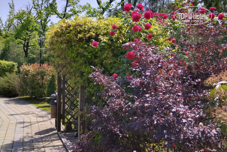 Территория санатория достаточно большая, есть где прогуляться, много зелени, кусты роз, скамейки, беседки, футбольное и волейбольное поля, три теннисных стола, большая детская площадка. 1 июня поставили бесплатный надувной батут-горку. Детей и взрослых в течение дня развлекают аниматоры. Из аниматоров во время нашего пребывания понравилась только одна девушка Оля, очень громкая, позитивная, активная. Остальные были никакие. Что-то тихо бубнили себе под нос, видно ребята ещё неопытные в этом деле.