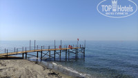 Пляж большой, песчаный. шезлонгов хватало всем. Никто не вставал спозаранку и не бегал их занимать. Пляжных полотенец в отеле нет, мы об этом знали и взяли свои. Пирс старый, с него можно спуститься по железной лестнице. Рядом с пирсом хорошее песчаное дно и неглубоко, можно стоять и наблюдать за проплывающими мимо рыбками. Но подняться назад по этой лестнице не каждому удается, последняя нижняя ступенька высоко расположена. Если заходить с берега, то нужно выбирать проход между большими камнями, дальше дно песчаное. Коралки мне не пригодились, можно обойтись без них. На диком пляже рядом с пляжем отеля огромные плиты и заходить в воду мы там и не пытались. На пляже хорошо наблюдать за заходом солнца.