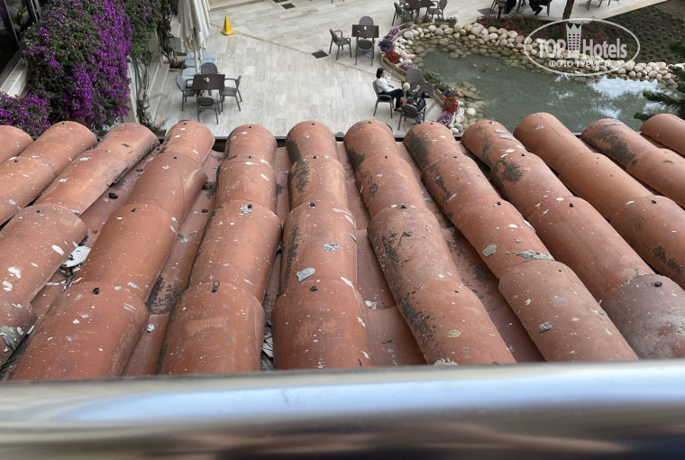 Приехали вечером, заселили в номер на 1 этаже (3-ьем по-русски) с видом на черепицу и территорию кафе Беллис. Вид можете оценить в фото. Может кому-то и не важен вид, но я люблю понежится на балконе с книжкой, пока моя семья спит. На ресепшн попросили прийти завтра утром и тогда они нас переселят. Но утром опять попросили прийти завтра.. Обратились в отдел по работе с гостями, те переговорили с сотрудниками ресепшн и тоже послали нас "до завтра". Пришлось прибегнуть к старому работающему способу - слегка повысить тональность разговора и тут же для нас освободился номер на 5 этаже (7ом) с видом на лес и парк аттракционов (ребенок решил, что это волшебная башня с принцессой, ну пусть так:).