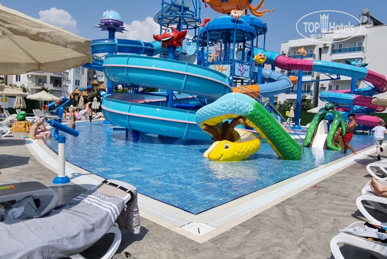 Отель: территория не большая, но все есть. 2 бассейна (в разных местах) + детский (холодный) + АВКАПАРК!!! Да, мы были очень удивлены, увидев его. Открылся видимо перед нашим приездом. Детская площадка, игровая комната, фитнес, баня - бесплатно.