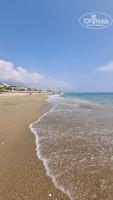 Пляж: вот тут не однозначно. Сам пляж нормальный, песчаный. Инфраструктура хорошая, бар, гамак, качели, мягкие лежаки на полу, фламинго и.т.д. КЛАСС! А вот вход в море нам не понравился. Заходишь по колено, а дальше большие камни (можно пораниться), затем опять песок и камни. И так везде на этом побережье, пробовали заходить в разных местах и пляжах. Море само прохладное в июне в этом году, но купаться можно. Еще ручей (река) вносит свое в температуру, прям через весь заход в море течет очень холодный ручей и в какую сторону течение, туда вся эта вода и идет. В первые дни он больше затрагивал соседний пляж, а потом начал наш. Волны довольно сильные, всего один день был полный штиль и чистейшая вода.