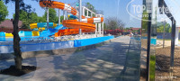 Еще сайт нам обещает «Новый Аквапарк площадью более 5000 кв. метров с кольцевым бассейном "Ленивая река" протяженностью более 230 метров и спокойным течением, а также зоной детских и взрослых горок высотой более 8 метром и длиной 70 метров, спрей-парк для детей.» Да, аквапарк есть. Точнее его строили активно, когда мы заехали и 01.06 было неофициальное открытие. Пригласили блогерку, которая притащила двух детей, и снимала их радостно, как они резвятся в детской части аквапарка с детскими горками, а рядом в это время суровый мужики пилят болгаркой что-то внутри канала, который как раз достраивался (по нему потом пустили воду). И я, проходя мимо вижу картину: В воде резвятся дети, их снимает блогерка, в 50 см. от воды лежит электрическая розетка на гибком шнуре, от нее в канал идет шнур к болгарке, которой пилит мужик. Электричество и вода, что может произойти, верно ведь? Именно такое мнение я и выразил, слава богу ничего не произошло и это все потом убрали. Насколько я понимаю, открытие такого аквапарка должно сопровождаться приемной комиссией, но по моему ее не было.