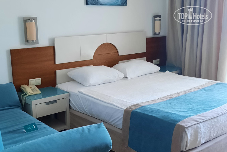 Отель понравился. Номера просторные, мебель новая. Кондиционер расположен очень правильно, поток холодного воздуха направлен в др.сторону от кровати, можно спать с включённым без риска заболеть. Доплачивать за sea view на мой взгляд нет смысла, т.к. в отеле 3 этажа и его почти не видно, окна выходят на бассейн и ресторан (мб шумно). У нас был вид на гору.