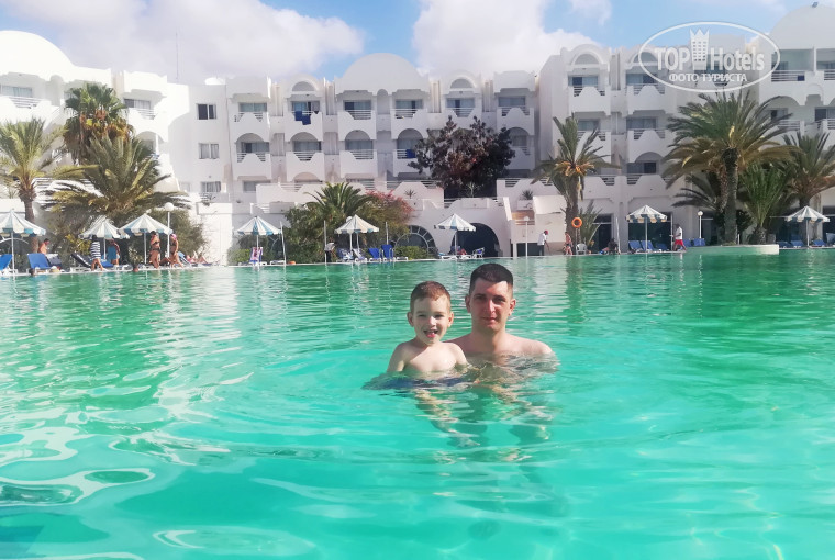 Огромный бассейн, мягкий белый песок, очень мелко и долгий заход в море, это надолго запомнится, и в Турции ,если честно этого не хватает, очень уж комфортное море в Тунисе.