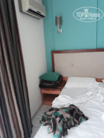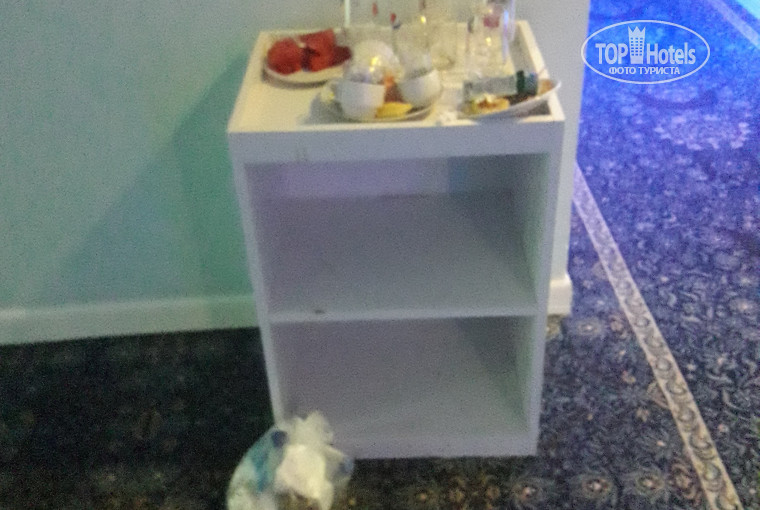 В холодильнике в номере - маленький пакетированный сок и бутилированная вода. Пепси нет, как встречается на некоторых фото. Номера начинают немного подуставать. Низ ванной двери подразбух, шкаф частично тоже. Под кроватью пыль, на балконе не протирают. Длина кровати 1.8 метра. Это также и мой рост, неудобно. Матрас не самый качественный, под конец спина стала это замечать (в 35 лет). По телевизору Россия 24, украинский 1+1, евроньюс и турецкие каналы.