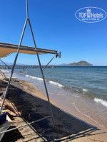 море - вход ужасный, огромные острые камни, ноги переломаешь. с детьми не возможно, купались с пирса, причём соседнего отеля, там песок и не глубоко, взрослые могут стоять. С пирса нашего отеля было сразу глубоко и почему- то буйками огорожен кусок, типа на общий пляж не выплывай, это вообще не понятно, либо отгородили вход в море для платных беседок, что тоже не понятно. Пляж маленький и грязный. При нас уборщик 5 минут сгребал тину и так и оставил возле нас кучу, которая так 3 дня и пролежала. На дне пакеты и даже покрышка лежит.