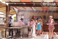 Вроде 4 ресторана, один из них на пляже, каждый dечер дает развлекателдьные программы и гриль-парти с мясом и морепродуктами (фото приложу).