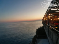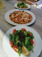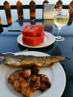 Обедали не в ресторане , а в бистро на пляже . Бургеры два вида пиццы , маргарита и мясная с оливками, салат и паста . Всё вкусно . Есть соки , воды , кофе , чай . Из алкоголя пиво , вино .