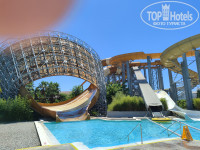 У отеля очень маленькая территория , вернее ее нет совсем . Корпус А и Б ( через дорогу), ресторан , внутренний бассейн , снаружи очень маленький взрослый и детский бассейн .