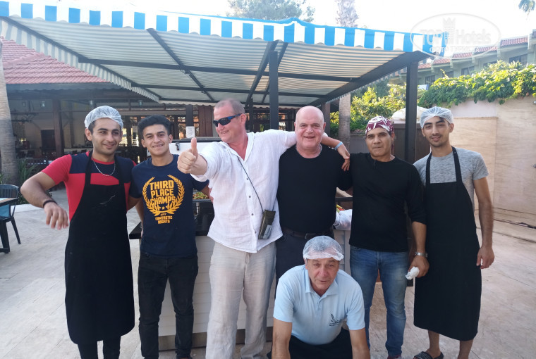 В отеле работает приветливый персонал. Все стараются угодить практически во всем. Отличная команда поваров во главе с шефом и его помощниками (фото прилагается). Еда мне очень понравилась, хотя почему то многие ее в отзывах ругают (мне было вкусно и дети уплетали за обе щеки). Что немало важно за две недели прибывания не случилось ни одного отравления и ни изжоги!!! Обилие фруктов на постоянной основе! (Перечислю .. арбуз, дыня, абрикос, слива, виноград черный и зелёный, нектарин) это все было во время нашего пребывания.
