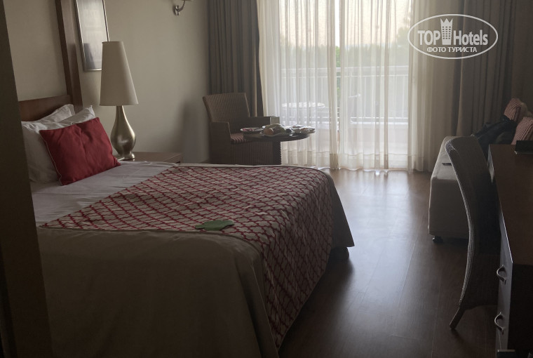 В номере шумоизоляция на 10 из 10 при закрытой балконной двери, никаких посторонних звуков. Номер просторный, чистый, мебель новая, кровать была двухместная, с жестким матрасом (то что нужно!). Спустя минут 10 после заселения нам принесли наши чемоданы. Во время отпуска пополнение минибара было ежедневно либо по запросу через приложение (пиво,кола, спрайт, фанта, холодный чай, вода+ приносили соломку и печенья). Уборка ежедневно либо по вызову через приложение отеля (очень удобно и современно, но приложение стоить немного доработать). В ванной убрали 1 раз за неделю проживания, но можно было также вызвать сотрудника через приложение, мы этого не делали, у нас всё было в порядке. Полотенца меняли каждый день.
