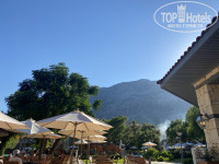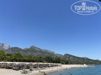 Территория отеля очень большая, зелёная, чистая, открывается удивительный вид на горы, до которых, по ощущениям, руками подать. Воздух очень чистый, свежий. На территории отеля есть аквапарк (аквапарк был открыт 1 день, в остальные дни он был закрыт, возможно мы просто не видели в другие дни, что он открыт). Бассейн очень большой, чистый, каждый вечер его чистили, температура воды была очень комфортная. На территории отеля мы пользовались двумя барами: у моря и у бассейна, у бара у моря каждый день делали отменные лепёшки гёзлеме, немного приходилось отстоять в очереди, но оно того стоило. Выбор напитков в баре был огромен и на любой вкус. Бармены очень приветливые и дружные, часть барменов знали русский язык, во всяком случае на уровне обслуживания проживающих.