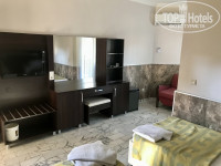 Про номера. Номера вполне просторные (мы жили в пятом корпусе). Очень понравилось наличие полочек и шкафчиков в достаточном количестве, вешалки привозила свои (но в номере тоже немного было), есть мини-холодильник. Номера, конечно, староваты, с паутиной и местами облезлыми или просто грязными стенами, окнами и зеркалами. Доп.место для ребенка - кресло-кровать (вполне удобное и мягкое (проверила на себе))) находится под кондиционером, но он дует не на кресло, а вглубь комнаты. Температуру кондиционера изменить было не возможно, но для нас было не критично. У нас в номере был вполне просторный балкон с хорошей сушилкой, столиком и двумя стульями. В ванной комнате удобная огромная столешница у раковины, под раковиной большая тумбочка, сама раковина удобная: широкая и глубокая. Шампунь, гель и мыло в номере есть, но мы брали свои, так что про качество ничего не могу сказать. Душевая за дверками, тесновата. Плитка и сантехника, конечно, страшные. Но огромный минус поставила бы за вонь (не запах!!!) канализации, которая мучила нас всю вторую неделю нашего отдыха. На просьбы устранить запах администрация реагировала, но хватало этого не надолго(((. Иногда по несколько раз в день приходилось обращаться с этой проблемой(((. Запах был настолько резкий, что разъедало даже глаза. Один раз из кранов лилась серо-черная вода. Уборка в номере сводилась к выносу мусора и замене полотенец (когда мы сами просили). Постельное белье ни разу не меняли, но мы мылись по пять раз на дню, так что белье и не пачкали. Когда я еду в подобные отели, то всегда беру с собой половую тряпку, чтобы не мотать нервы из-за некачественной уборки и не вытирать полотенцами пол. Поэтому на уборку не жалуюсь, сами за собой убирали))) Звукоизоляция в номерах никакая((( Была в гостях в восьмом корпусе в номере на 2 взр.+2реб. (с двухъярусной кроватью). Комната и балкон там меньше, ванная просторнее, сам номер мне показался "посвежее".