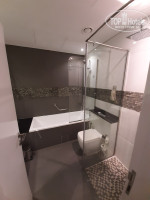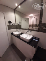 Ванная комната с санузлом в ней 2 раковины, ванная с душем и отдельно душевая кабина с тропическим душем (можно мыться 2 людям одновременно). Тут же присутствует всевозможная косметика - от мыла и шампуня, до кондиционера и лосьона для тела, все хорошего качества. Полотенец сначала не доставало на всех, но мы позвонили на ресепш (0) и оперативно всё принесли (мы просили еще халат и тапочки - в наличии в шкафу было только на 2 персоны), а также воды.