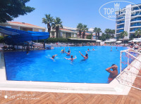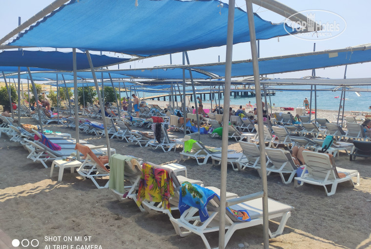 Отель недорогой так сказать бюджетный вариант. У нас сумма на отдых была небольшая. На что то шикарное не претендовали просто хотелось моря и солнышка ну и чтоб условия были нормальные. Долго выбирали, пересматривали варианты сходили в пару агенств но так нам ничего толкового и не предложили. Думали уже вообще никуда не поедем но в итоге нашли отличного турагента минут за десять нашел нам подходящие варианты и мы выбрали этот отель. Рекомендую этого специалиста всем.Отлично разбирается в своем деле сразу понял что мы хотим от отеля и даже дал полезные советы на чем где мы можем сэкономить. В отеле много людей в основном молодёжь. Так что компанию вы тут всегда найдете. Конечно достаточно много семей с детьми. Но в основном это дети постарше. Анимация есть но все простенько и по большей части развлекали себя сами. Территория очень скромных размеров но везде чистенько.. Бассейны чистые лежаки хорошие. Есть даже пара небольших горок. Учтите что интернет платный правда есть бесплатный на ресепшене но мы заплатили и не заморачивались. Номер небольшой но в хорошем состоянии. В ванной комнате небольшой набор косметики. Уборка сносная но могли бы убирать и лучше. Номер был с видом на море небольшой балкончик. А вообще большинство номеров в отеле имеют вид на море. Сейф бесплатный, минибар пополнили только когда приехали ну а дальше ставят только воду. Кормят очень хорошо. Даже не ожидали что будет столько всего. Курятина, баранина, рыба. Хороший выбор сладостей и фрукты. Есть даже диетическое питание. А еще два ресторана аля карт но туда нужно записываться. В принципе самое главное было чтоб пляж находился на первой линии. Заход в воду галька и крупная да и на самом пляже песка немного но это не проблема просто использовали обувь для купания. Да и заход резковат но мы хорошо плаваем поэтому для нас это не было проблемой. А еще пусть и небольшой пирс но там удобные лежаки правда их рано занимают и нужно успеть. На свои день отель неплох. Лично нас все устроило!