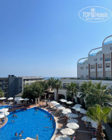 У отеля хорошее расположение-до старого города пешком по променаду 15 минут. Напротив отеля есть пара магазинчиков, 2 аптеки, до Migros и Waikiki 15 минут пешком. Территория маленькая (для отеля 5* Турции), до пляжа идти 7 минут под горку. Бассейны чистые, на территории чисто. Территория красивая.
