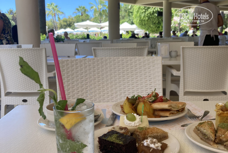 Кухня: могу сказать,что мы нашли абсолютно все,что хотели бы. Фрукты, овощи,сыры,салаты, рыба;мясо достойно отдельной похвалы!!!!сладостей море! Есть отдельно тематические дни, мы попали на морепродукты, очень впечатляюще! Персонал кухни задаёт хорошее настроение,без улыбки не пройдут мимо!