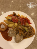 Еда-много))) всегда есть мясо , гарниры, овощи, один день даже суши ))) вообщем всегда и жареная рыба и мясо , и отварное, и детский ресторан, и мороженое у аквапарка- тут оценка 5.
