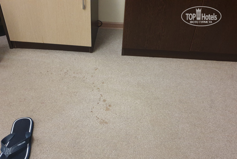 -Зайдя в номер первое что бросилось в глаза - грязнющий пол, в нескольких местах с брызгами чая/кофе, в других местах разводы, как-будто от шоколада (или чего похуже). Обои местами ободранные и грязные.