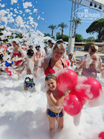 Добрый день. Вот мы и вернулись с отдыха. Теплое , ласковое море, солнце и позитивный настрой сделали своё дело. Море теплое, вода чистая, дно "камешки", лучше иметь "коралки". Лежаков хватало всегда, хотя мы и ходили с бассейна на море и обратно (полотенца на лежаках не оставляли, места не занимали). Не много о плохом, на пляже убираются плохо, как в прочем и везде. По питанию всё однообразно, изысков не ждите, но и отравлений или проблем с кишечником не было. Поставила 4балла, так было заявлено, что питание ультра всё включено. Это конечно просто всё включено, но не как не УЛЬТРА!!! Лобби бар работал с 10,00 до 23,00, если захотите попить чай, часиков в 8 или 9 утра, то нужно идти в столовую. Алкоголь строго после 10,00 и только местного производства. Немного про анимацию, есть аквааэробика, водное поло, волейбол. На территории отеля есть теннисный стол, желающие могут в любое время поиграть. По субботам и вторникам пенная вечеринка в 15,30 для всех желающих, резвятся как и дети, так и взрослые. Вечером в 20,40 мини-диско для детей, в 21.30 начинается шоу программа для взрослых, частенько она заканчивалась в 23,00. Но мало кто знает, при отеле, в подвальном помещение, под столовой есть дискотека с 24,00 до 2,00ч. Напитки там бесплатно. У корпуса через дорогу есть водные горки, время работы с 10,00 до 12,00 и с 14,00 до 16,00. Там же можете отведать пиццу. Номер нам достался на втором этаже центрального корпуса с видом на соседский отель, но нас это не смущало, мы в номере только спали. Телевизор-это обычный монитор подключенный через кабель, было 4 русскоговорящих канала, 2 из-них сплошная политика. Убирались каждый день, но качество уборки среднее, при въезде у нас была внутри грязная тумбочка, которую так и не убрали за весь наш период пребывания. С кондиционером нам тоже, не совсем удалось справиться, он либо сразу холод дает, пытаешься сделать послабее, отключается. Про интернет, в отеле его не брали, сразу купили местную симку и проблем не знали.