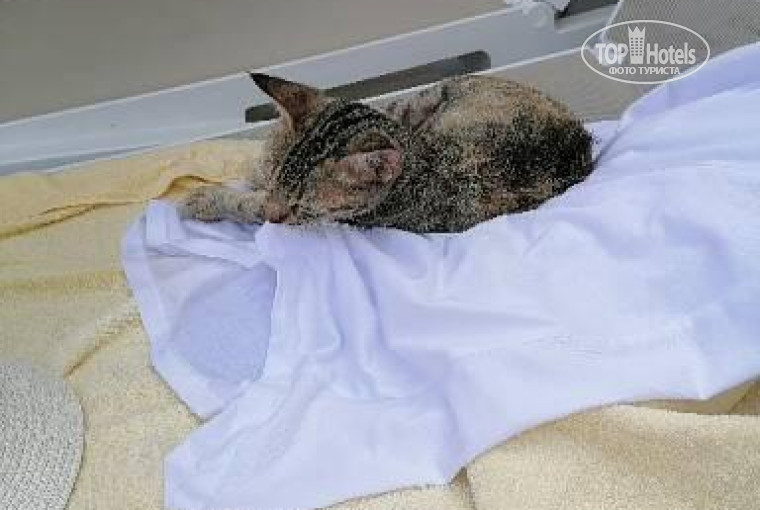Дорога на пляж составляет минут 15 пешком или 5 минут на микроавтобус, который ходит каждые 15-20 минут, через дорогу и по территории другого отеля. Тут можно полюбоваться зельнью и гуляющими курочками и кошечками)) На пляже шезлонгов хватает всем в любое время суток, проводится регулярная уборка. Также есть ресторан, где можно не только перекусить и взять воду, но и полноценно пообедать. Весь пляж и заход в море покрыт песком, заход пологий, надо заходить достаточно далеко, чтобы полноценно поплавать, но для детей раздолье) В некоторых местах, ближе к буйкам, встречаются острые камни, я наткнулась и слегка поцарапалась. Дополнительно предлагают купить мороженое и фреши за 3€ и разнообразные водные развлечения.