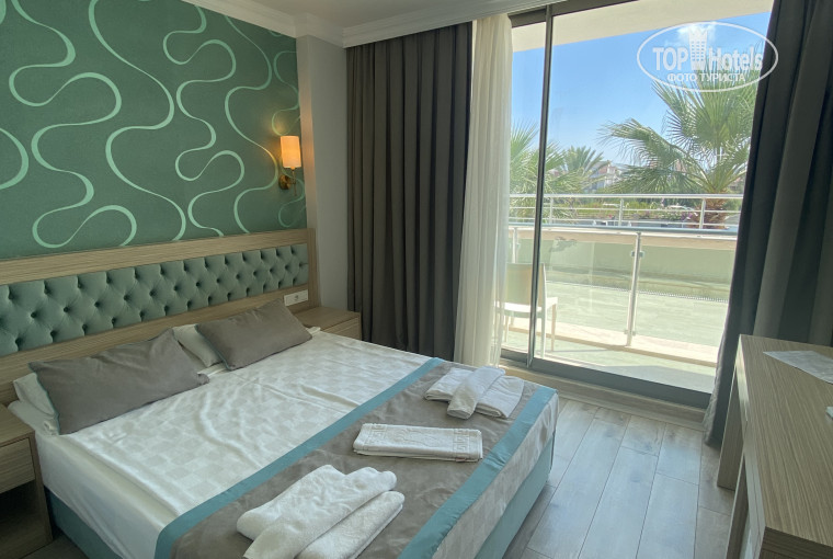 Номера хорошие, мебель почти новая, кровать жестковата. Подушек почти нет, тонковаты. Кондиционер работает, только при закрытой двери от балкона. Балкон просторный, есть где повесить вещи сушиться. Окна выходили на бассейн, до 23 музыка. Нам не мешала, ложились позже.