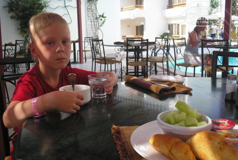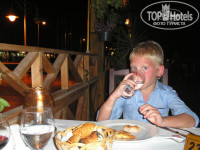 Питание было убойным - овощи свежие и приготовленные, вкусные заправки для салата, сыр и колбасу не пробовала, но они тоже были. Вообще на мой взгляд мяса было очень много - глаза разбегались: всегда курица, бефстроганов, купаты или шашлыки на шпажке, каждый ужин - гриль из мяса, курицы, печени или рыбы. Про сладости даже не говорю - очень красиво много и вкусно, к сожалению так и не успела все попробовать. В общем, я поправилась на 2 кг за 10 дней! Правда нужно отметить, что рыба всегда одна, по-моему морской язык, но готовят ее по-разному, то в соусе запеченая, то в кляре, то гриль. Арбуз и дыня каждый день! Плюс мороженное на пляже, нам с ребенком очень нравилось такое типа замороженного льда - оно не жирное и кисленькое, в жару в самый раз. Ходили в итальянский ресторан - там обслуживаниевысоком уровне, очень статные официанты, смотреть на них приятно. Еда практически такая же как в столовой, но оформлена красиво.