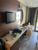 Приехали мы в отель с супругой 1 сентября где-то в 12:00, готовых номеров не было, нам предложили оставить чемоданы в фойе и сходить пока на обед, который начинался с 12:30. Мы так и поступили. Вернувшись все же раньше 14:00 на ресепшн, подождали еще немного. И вот нам вручают заветный ключ от номера 1472 на первом этаже корпуса "Ромашка", куда мы проследовали за сопровождающим. Двери номера сразу же натолкнули на опасения, а когда попали внутрь, то они подтвердились. Отель просто дурит своих клиентов! Размещенные на всех известных ресурсах фотографии номеров не соответствуют действительности! И мы ощутили это на себе. Указанная на сайтах реновация стандартных номеров коснулась не всех, это точно. Когда ты бронируешь приятный номер по фотографиям, ты и ожидаешь увидеть, как минимум тоже самое на месте. Естественно, далее пошла попытка выяснить все это на ресепшн, где нас уверяли, что все стандартные номера одинаковы. На показанные фото с сайтов туроператоров, также находились невнятные объяснения. Хотя фотки нашего номера и там разнились очень сильно. Просили показать номера, где входные двери выглядят новыми, а не как у нас. Где в ванной комнате плитка, как на фото? а не обои. Покажите, пожалуйста. Конечно, возможности показать не было, все же занято. Договорились, что на следующий день нам обязательно предоставят другой номер.