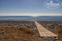 Пляж - галечный. Есть оборудованные входы в море и пирс, все остальное - камни. Можно пройти по пляжу налево (идти минут 15) и придете на дикий пляж (очень красиво), нужно пролезть под скалой и будет счастье)!