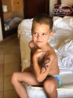 На пляже есть салон чтобы сделать таттушки, прикольно, детям понравилось, ходили балдели, перед вылетом так же делают "контроль", но у сына по прилету началась аллергия, кода вся чешуей покрылась, будьте аккуратны с детками если что.