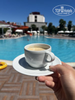 Номер в туре у нас был без балкона, мы решили по факту доплатить и номер поменяли. Заселили сразу. Номер обычный, чистый, уборка была каждый день, полотенца тоже меняют. Кондиционер, балкон, телевизор, холодильник, большой шкаф, прикроватные тумбы и тд, всё это есть. Бесплатный wi-fi только в лобби. На всей территории отеля, чтобы был wi-fi нужно доплатить. Так как мы в номере почти не находимся, а приезжаем гулять и отдыхать на море, то вполне все хорошо. В отеле есть лифт, что очень удобно. По всем возникающим вопросам менеджеры на ресепшн сразу отвечают и помогают.