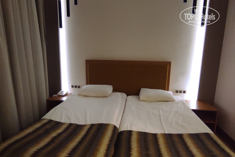 Мы выбрали самый простой номер, без балкона. Сам номер приятный. Всё, что нужно, есть. Чайник, халаты, тапочки и т. д.