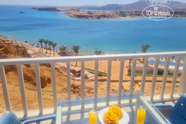 Отель расположен на скале над бухтой, на пляж можно спуститься на лифте, который работает с 6.00-20.00, а если вы на море идёте раньше, как мы, то можно спуститься с лестницы, с которой открывается шикарный вид на море. Территория отеля небольшая , но очень благоустроенная - постоянно ухаживают и поливают газон, растения, чистят дорожки, всё это с раннего утра. Кстати вайфай ловит не только на реснпшн, но и в номере, у нас ловил и на пляже.
