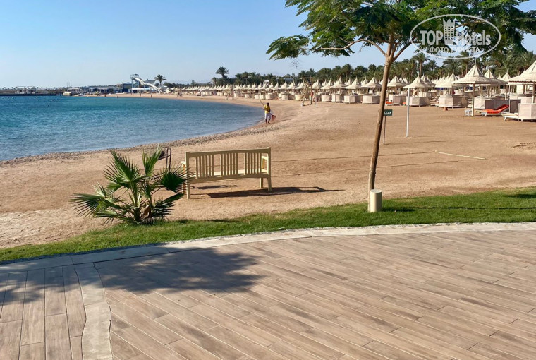 ПЛЯЖ: Стоит отметить, что пляж довольно большой. Очень нам понравилось, что много лежаков и нет необходимости искать свободное место. В отеле лежаки разных конфигураций расположены по всему периметру пляжа и бассейнов. Бич-бой поможет сдвинуть лежак при необходимости, конечно же за чаевые. Вход в море в начале каменистый. Но.., около столбов со спасательным кругом есть импровизированные дорожки, очищенные от камней. Весь день работники что-то скребут, метут, собираю камни. По пляжу постоянно курсируют бармены с предложением "Что принести?" . Не скупитесь на чаевые и вас запомнят и принесут воду, чай-кофе и напитки по вашей просьбе.