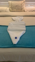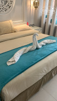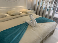 НОМЕРА: Номера в отеле очень большие. Имеют две зоны: спальную и гостевую. Красивый дизайн. В номере есть сейф, ТВ, холодильник. Воду пополняют ежедневно. В Ванной комнате совсем нет полочек в душевой. Писали многие до меня, как -то не удобно . Куда полотенце повесить? Куда мыло-шампуни положить? Так же берите свои ванные принадлежности. (шампунь, бальзам, гель для душа). Все приходится просить. Это наверное самое большой минус отеля. Уборка вполне приличная. Гусей-лебедей крутили нам ежедневно.