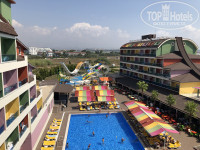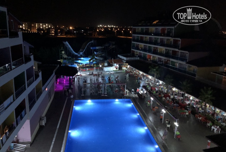 Территория отеля компактная, но ощущение что все под рукой, все на своих местах, лобби бар с коктейлями, тут же терраса со стороны дороги, можно посидеть, фойе с ресепшн, там интернет бесплатный, ресторан, с достаточным количеством посадочных мест, бар, бассейн, сцена, горки. И вообще отель какой то яркий разноцветный, позитивный). Сервис организованный.