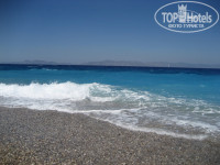 По поводу месторасположения: отель удачно расположен в самом центре города, до старого города минут 15 пешком, рядом с отелем много различных кафе, таверен, забегаловок, поесть есть где, цены примерно такие: если покупать греческие гирос или сувлаки(очень вкусно) в местных забегаловках, то они по 2-3 евро, если идти в таверну или в ресторан, то там на одного от 10 до 30 евро оставите. Блюда большие, обязательно идет гарнир, даже если и не заказывали его. Вокруг отеля много супермаркетов, можно купить все необходимое там. Вода от 30 до 70 центов за бутылку, Кола, спрайт, фанта 1 евро, пиво Амстел или Митос 1,40 евро. Так же есть улица баров, шумная улочка с диско-барами с открытыми входами, можно перемещаться из одного в другой, куча молодежи. Советую взять скутер или машину на прокат и проехать весь остров вдоль и поперек, точно не пожалеете! Скутер стоит 15-20 евро в сутки, машина от 35 евро и выше, бензин в среднем по 1,5 евро.