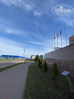 Отель расположен на окраине знаменитого города учёных Дубны, в ОЭЗ- особой экономической зоне (инновационных технологий) на продуваемой всеми ветрами огромной территории- тротуары, дороги со шлагбаумами, тонкие деревца рядами вдоль. Закрытая промзона рядом - не плюс и не минус отеля, а данность.