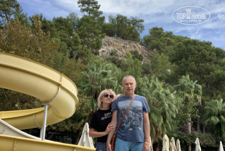 Мы раньше никогда не отдыхали "всё включено". Никогда не были в Турции. Очень остались довольны. Персонал, расположение, природа. Номер был небольшой, но уютный. В тихом корпусе. Конечно, шум доносился и к нам. Но в 23-00 всё стихало. Еда. Мы воспринимали её как турецкую кухню. Не всё нам подходило. Но разнообразие потрясло. А некоторые блюда очень понравились. Когда прогуливались вокруг территории, увидели пару, вышедшую из соседнего отеля 5 звёзд. Они с любопытством смотрели на веселье в нашем бассейне через забор. Мы сделали вывод, что у нас лучше. По территории бегают котики, собачки, рядом со столовой - птичий двор. Ну что ж. Это особенность отеля. Дети счастливы. С верхней террасы столовой во время завтрака видели диких коз, которые перемещались по крутому склону, спускающемуся к отелю. Море чистое. Да и пляж нормальный. Не хватило шезлонга? - рядом пустой пляж на гальке, не нужно толкаться. Хотя когда мы отдыхали (сентябрь - октябрь) с лежаками всё было нормально.