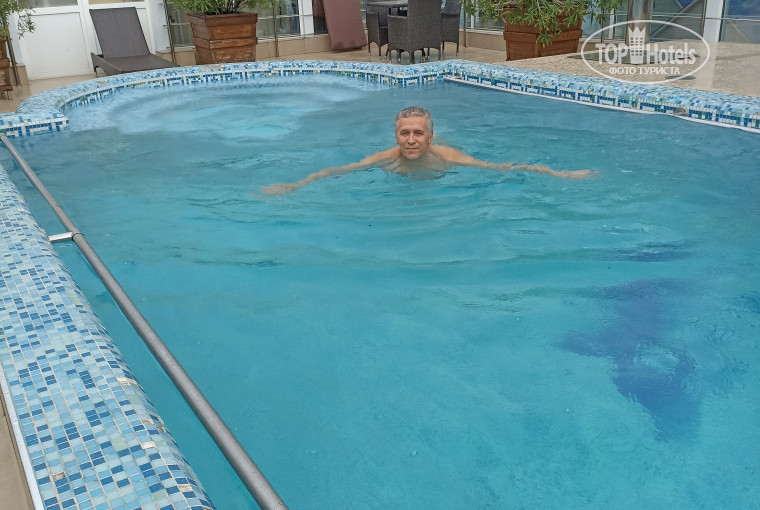 На крыше отеля, расположен бассейн. с подогревом воды до 30 градусов!Открыт с 08:30 до 21:00.У бассейна есть лежаки ,столики, стулья. Душевая, туалет. Хамам работает в течении дня, сеанс 1 час-900 рублей.